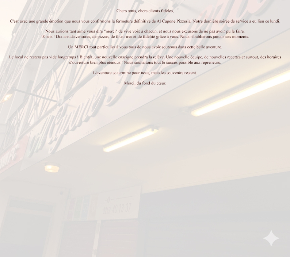 Créée en 2015; Al Capone Pizzeria est une entreprise artisanale située dans le nord de l'Ile de la Réunion.